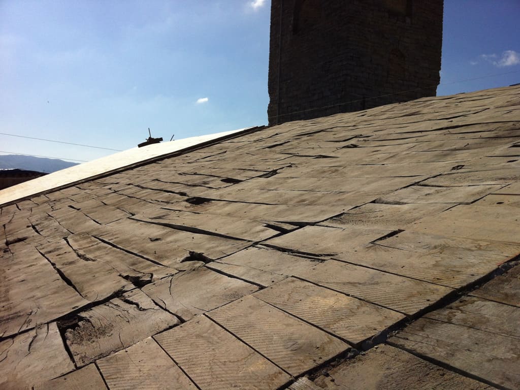 El estado de conservación del material de cubrición de la cubierta de la nave principal de la iglesia de San Saturnino de Pamplona era malo: Había muchas tejas rotas y movidas debido principalmente al viento, lo que ocasionaba numerosas goteras.