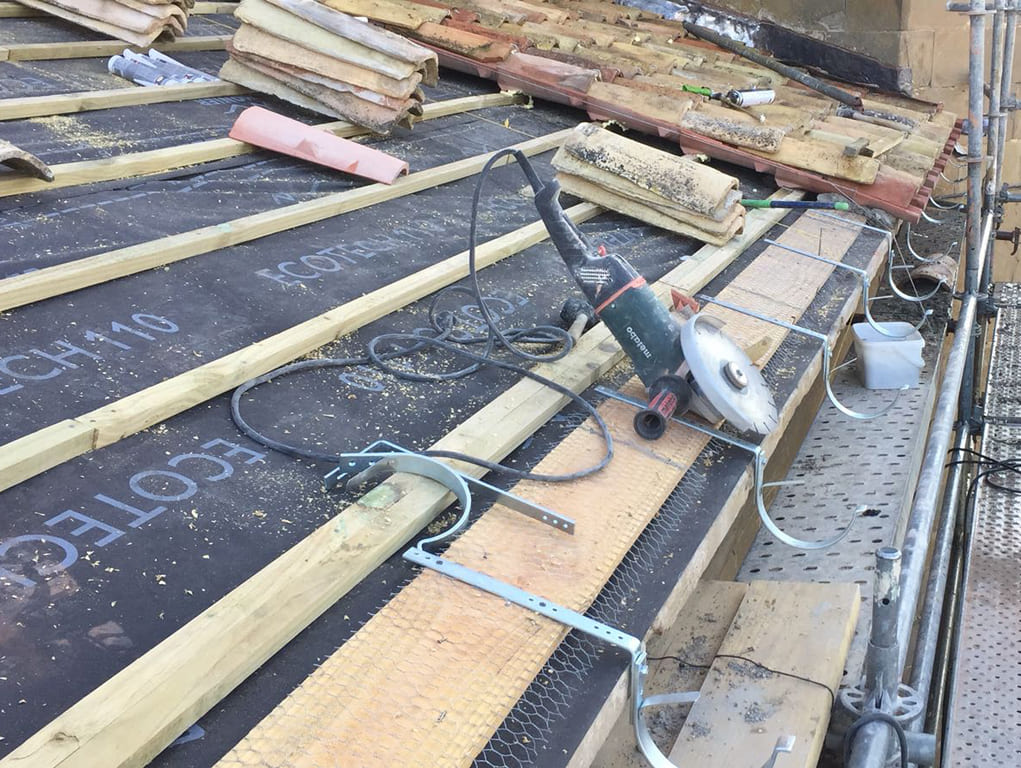 El resto de la cubierta no presentaba buen estado de conservación ,tenía mucho material de desescombro entre las tejas y la tabla y la estructura de madera tiene mucha flecha en las zonas de mayor luz. Tenía mucha suciedad y algo de vegetación. Las intervenciones en esta cubierta han sido siempre puntuales y remiendos, por lo que no se encuentra en buen estado.