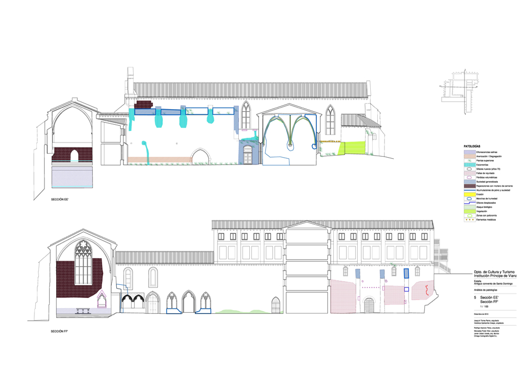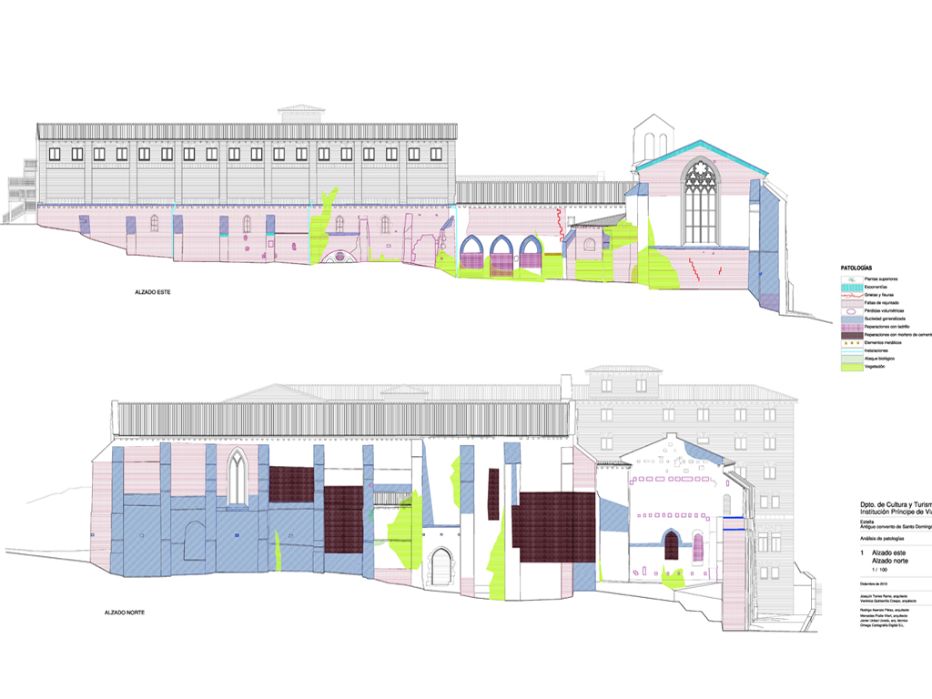 Los estudios previos han consistido en un exhaustivo levantamiento planimétrico del edificio, en el análisis de patologías y sistemas constructivos, así como en el análisis arquitectónico de cada una de las estancias y el conjunto.