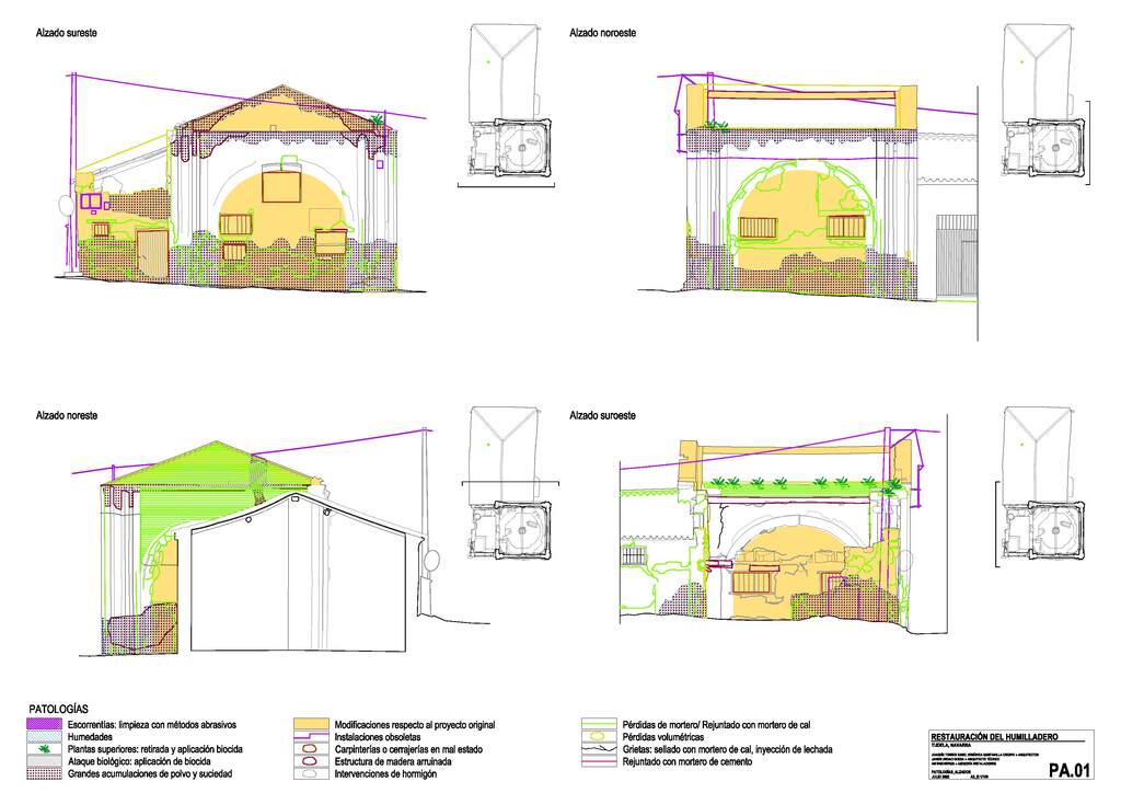 El nivel del pavimento de alrededor del Humilladero se ha ido elevando según se han adecentado e intervenido en los caminos circundantes; y construyendo diques y motas para contener las recurrentes riadas del río Ebro. Los caminos que circundan el Humilladero presentan una diferencia de cota con el interior del humilladero de hasta casi 2mts. El Humilladero aparece “hundido” en el pavimento. Las excavaciones recientes encontraron la cota de pavimento original. La cubierta en origen era a cuatro aguas, pero conforme fue perdiendo el uso religioso y adquiriendo usos civiles, sufrió numerosas intervenciones y en la actualidad quedan los piñones de la última cubierta ejecutada.