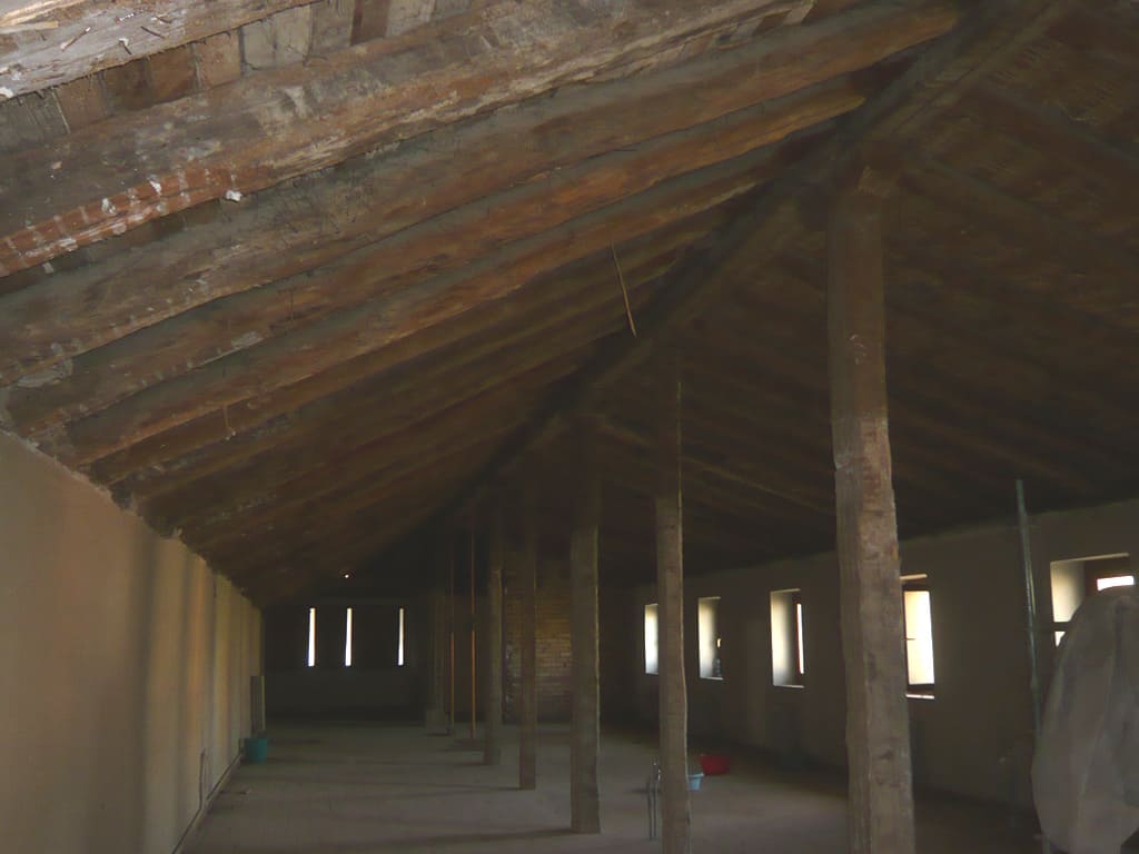 La cubierta objeto de este proyecto es la de un bloque alto adosado a la panda oeste del claustro. Se trata de un sencillo volumen que en la zona sur se macla con otros. La cubierta, formada por una estructura par-hilera de madera de pino, sufría la entrada de agua y la presencia constante de humedad.